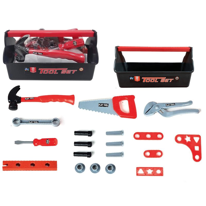 Misco Toys Construction 20 Piece Toy Tool Box Sets for Kids, Toddler Tool Box, Toy Hammer, Driver, and Wrench - Pretend Play Toy Tool kit for Kids Ages 3 4 5 6 7, Includes All 20 Pcs!