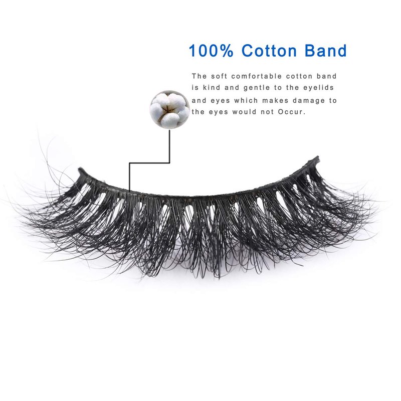 - 2. SOFT COTTON BAND: The super soft cotton band of our 3D Mink Lashes are kind and gentle to the eyelids and eyes and appropriate for both younger and mature women to put on