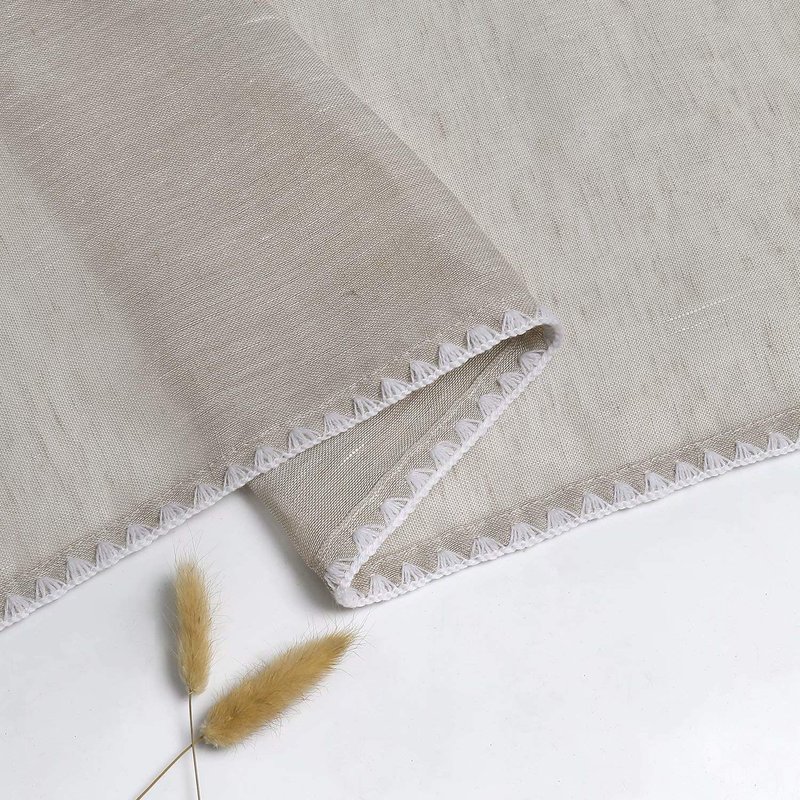 Hang Selectex linen textured sheer curtain to bring a hazy and aesthetic touch to your room. These voile panels are crafted from textured linen look fabric featuring bordered design both side of the semi voile curtain. Airy and breathable curtains is not only for fresh air flow, but also able to allow some natural light through, which can provide a air circulating and bright environment. Bordered curtains can be hung separately or matched with blackout curtains for a layered look, making rooms elegant and going with any decor. Perfect for living room, bedroom, office, sunroom, cafe, kitchen.