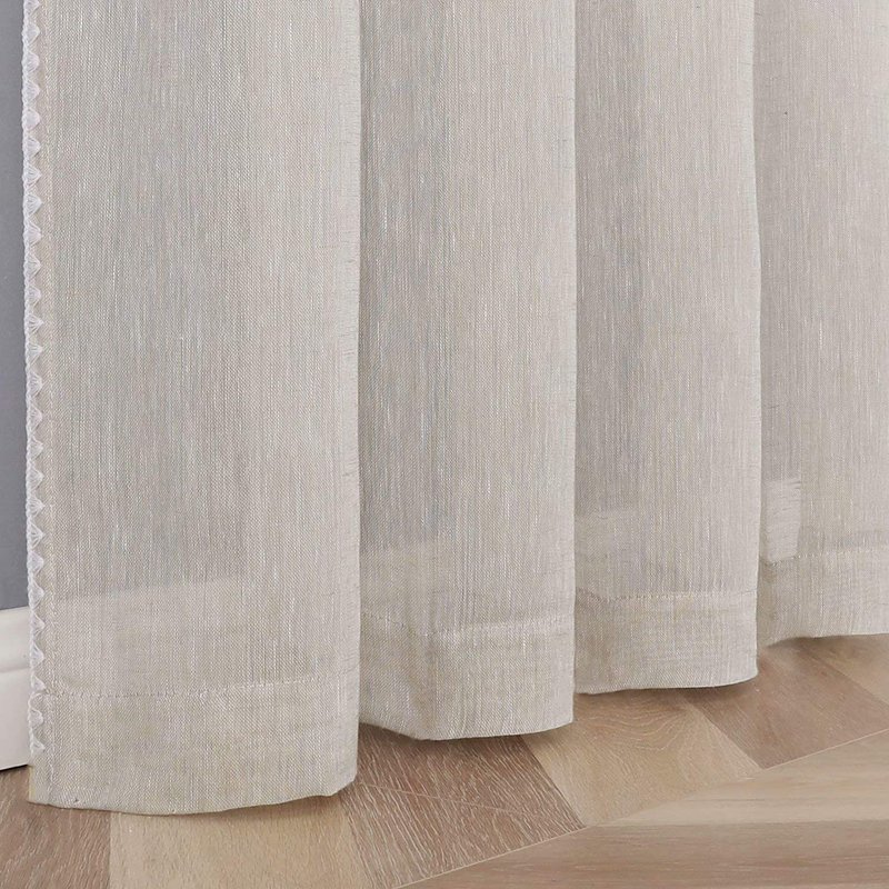 MISS SELECTEX Sheer Linen Curtains with Bordered - Natural Textured Semi-Sheer Drapes Grommet Top Voile Window Curtains for Living Room and Farmhouse, Linen, 52x95 Inches Long, Set of 2 Panels