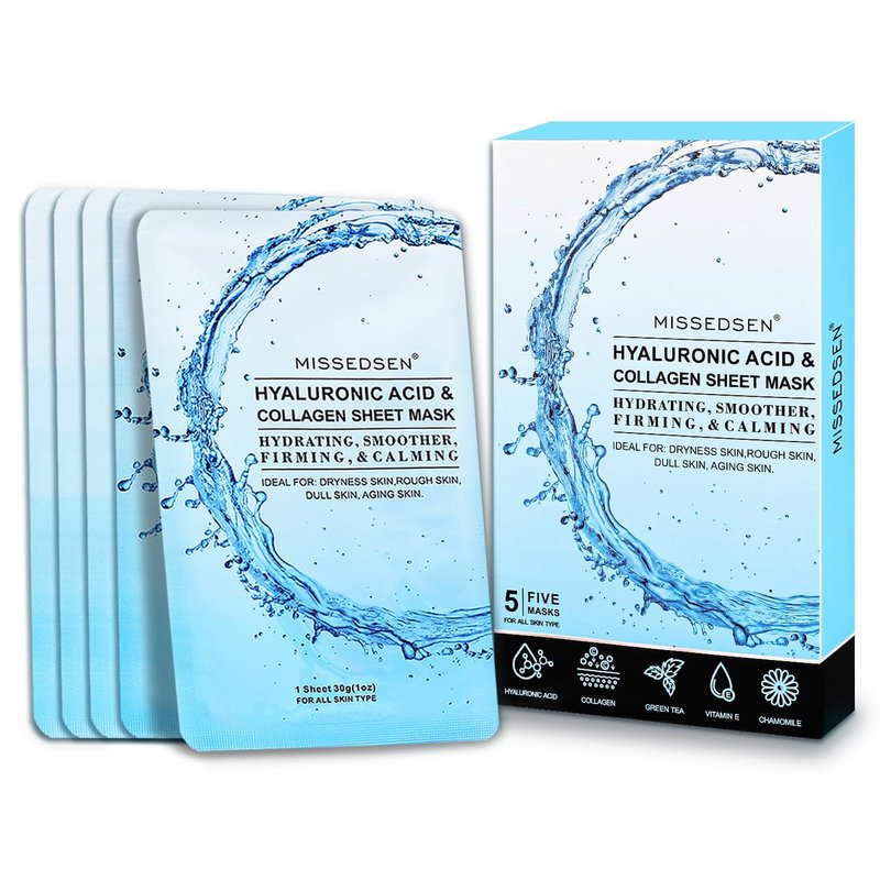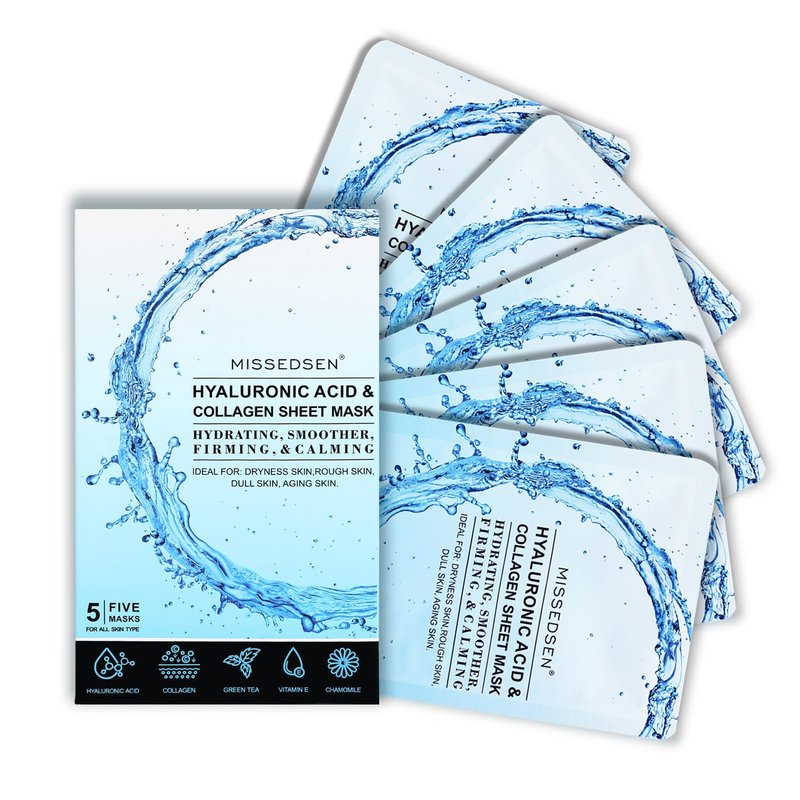 MISSEDSEN (Pack of 5) Face Masks Skincare Sheet Beauty Facial Treatments for Dry, Pore,Dehydrated,Sensitive Skin Mask Green Tea Collagen Hydrating,Smoother,Firming,Calming Overnight Face Mask