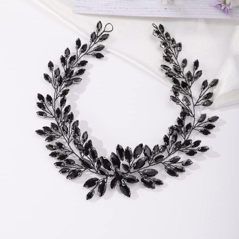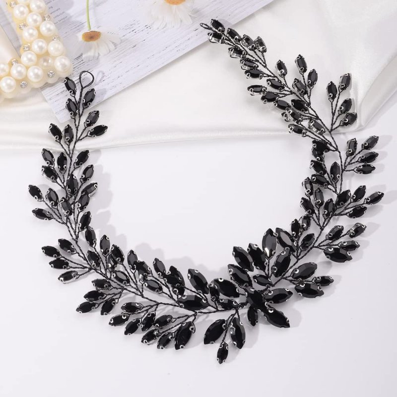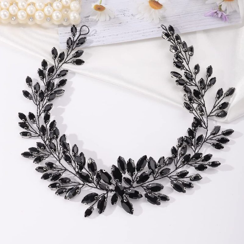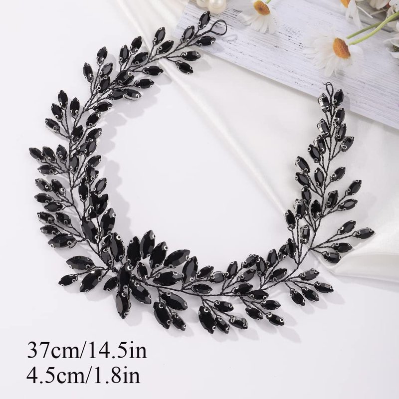Missgrace Bridal Women Black Rhinestones Hair Vine Vintage Headband Wedding Black Beads Hair Jewelry Hair piece Prom Party Halloween Hair Accessories for Women