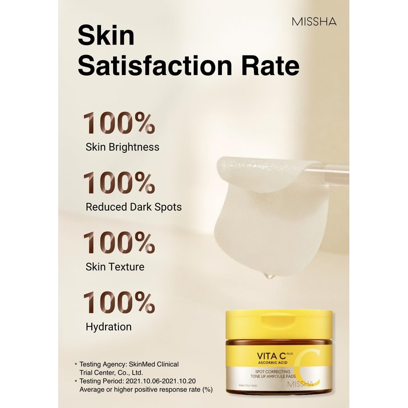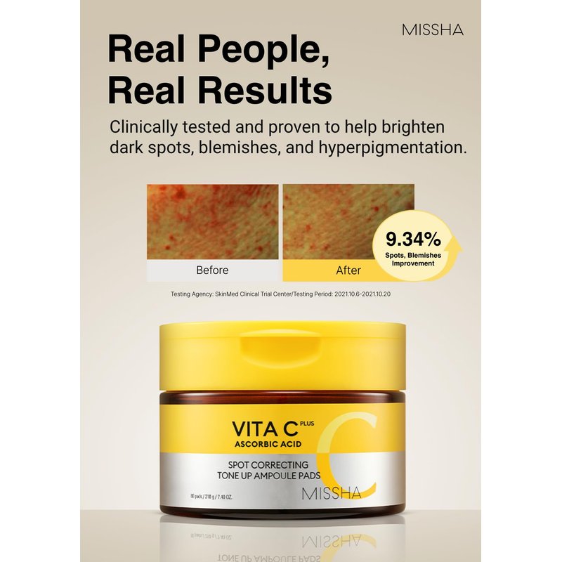 MISSHA Vita C Tone Up Ampoule Toner Pads (80 pads) Exfoliating Pads, Spot Treatment Pads with Vitamin C, Hyaluronic Acid, Collagen, Hydrating