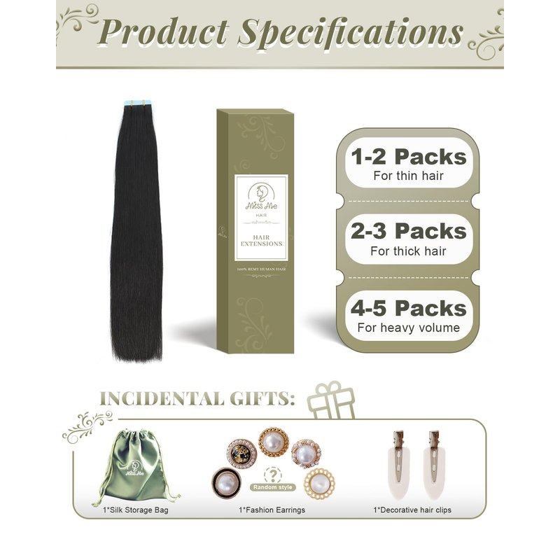 - Package Contains:Each package of tape hair extensions contains 20 pieces, weighing 40 - 50 grams. We recommend using 3-4 packages of tape extensions for a full head of hair, i.e. 150 to 201 grams of hair.