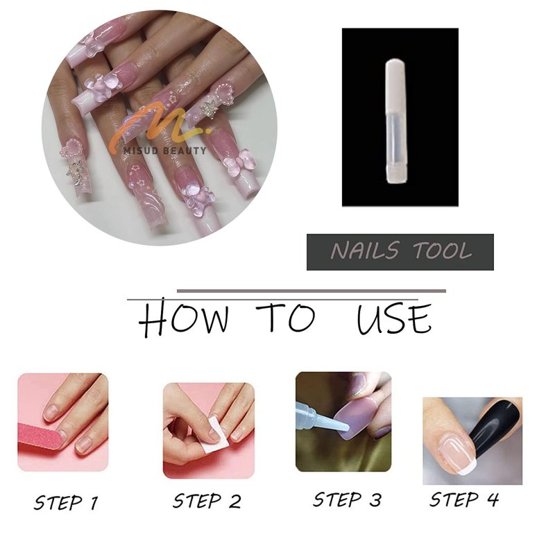 3.Select a right size of the nail, apply the glue to the back of the nail and put it on your fingernails.