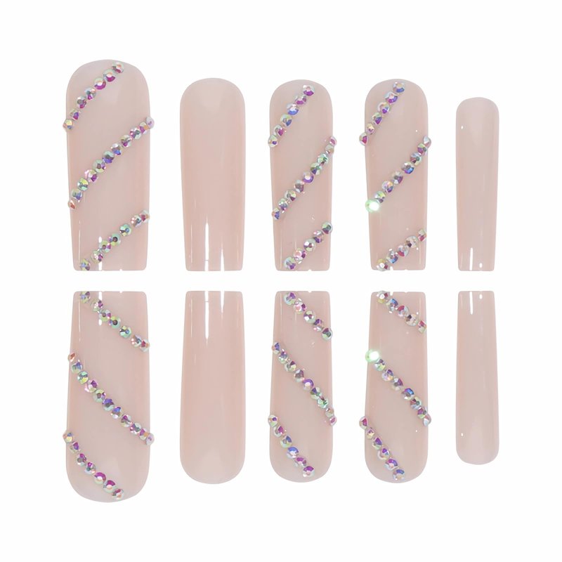 - 【Unique Design】 According to the most popular elements of the moment, these long square press on nails are designed with nude gel and luxury diamond.