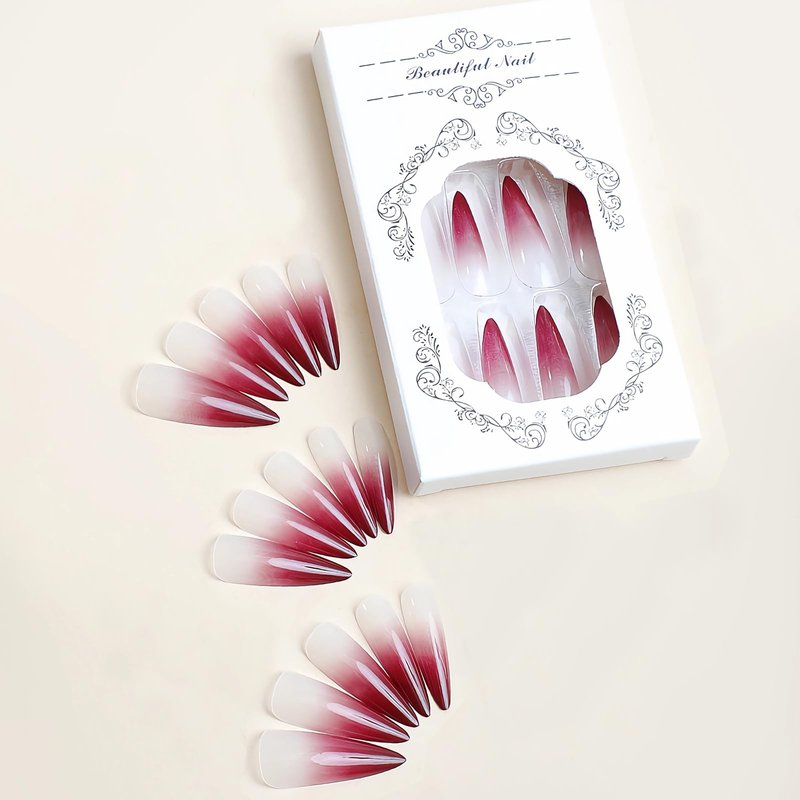- 【Unique Design】 According to the most popular elements of the moment, these long stiletto press on nails are designed with wine red gradient and burgundy ombre.