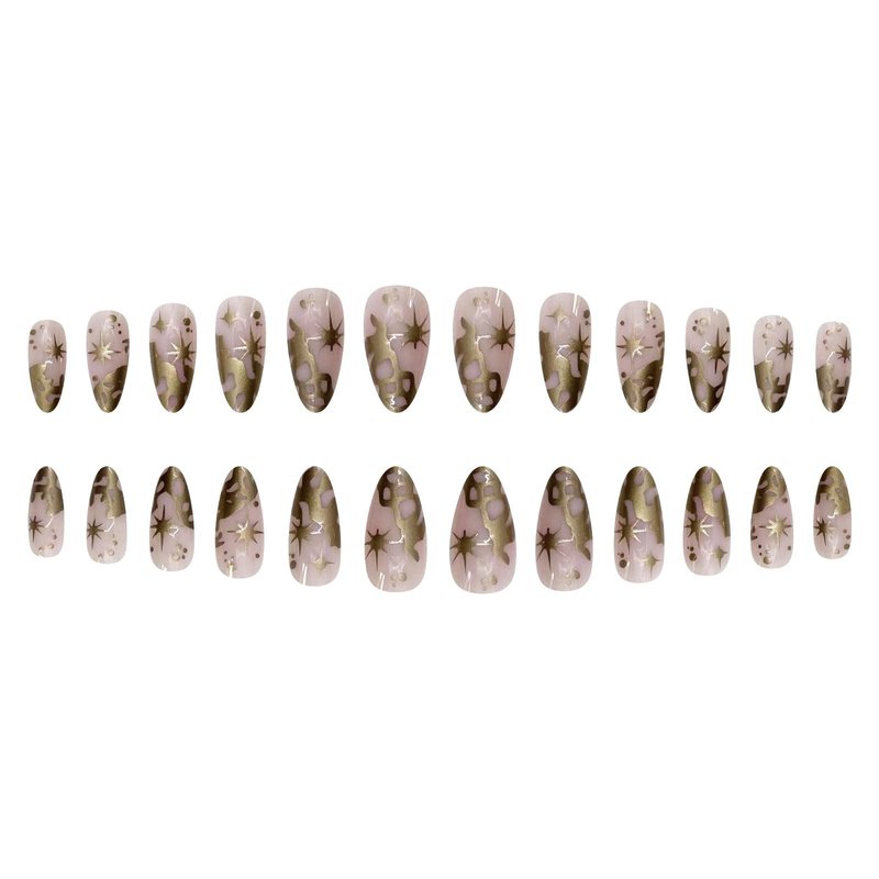 - 【Unique Design】 According to the most popular elements of the moment, these medium almond press on nails are designed with gold chrome star, sun and swirl.