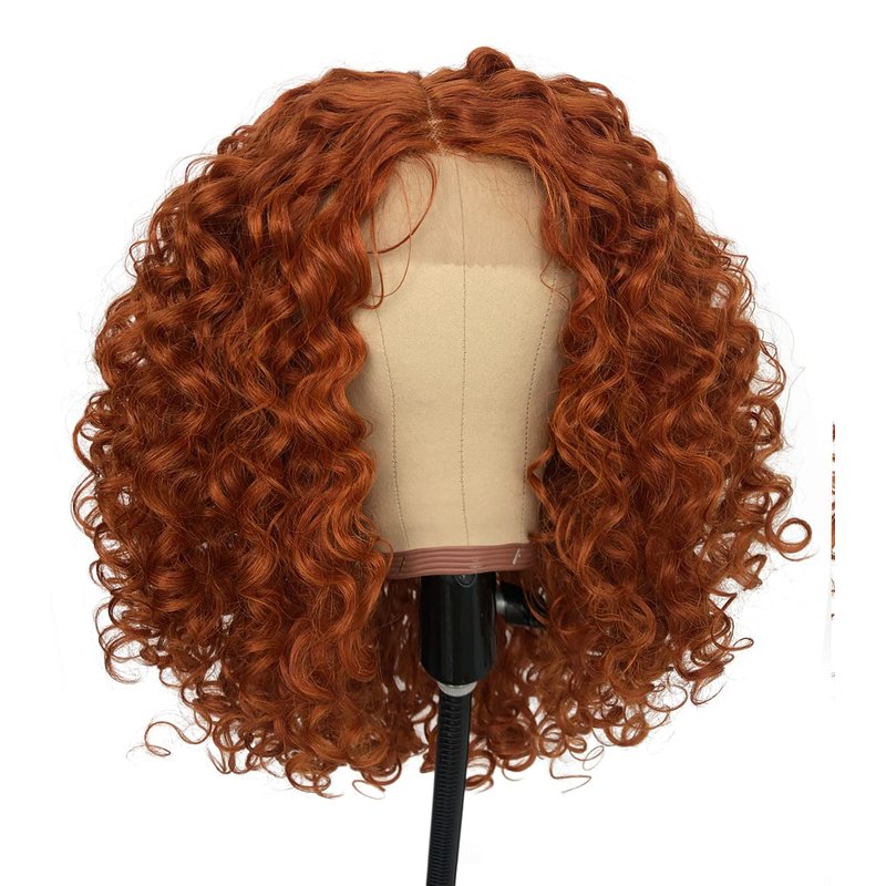 MITIMES 16inch HD Pre Plucked Ginger Curly Lace Front Wig Human Hair Blend Synthetic Ginger Orange Short Curly Lace Front Wigs for Black Women