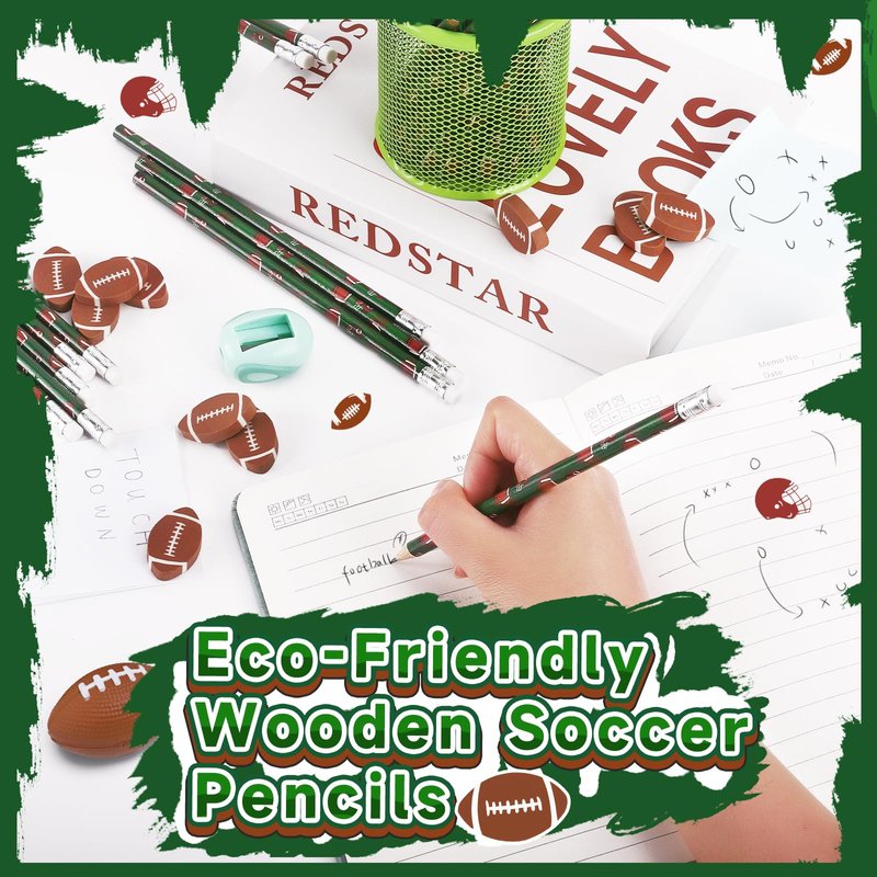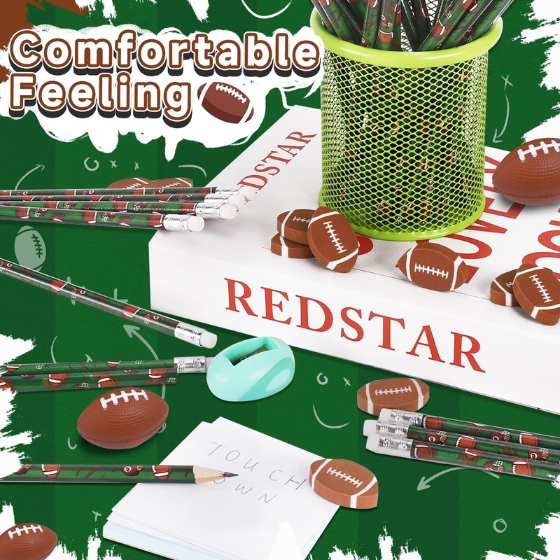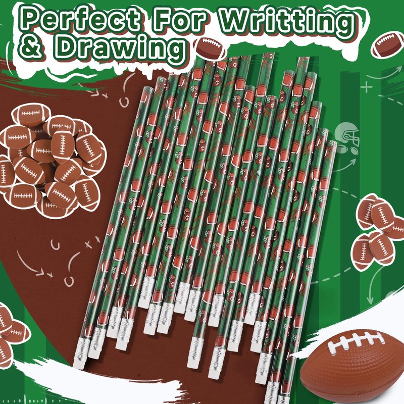 • Super Valuable Pencil Set - The package comes with a total of 36 pieces football printed pencils and 36 pieces football erasers, sufficient quantity can meet your daily needs to use, replace and share with your family members, friends and classmates.
