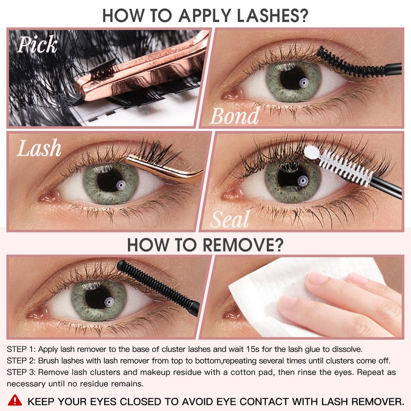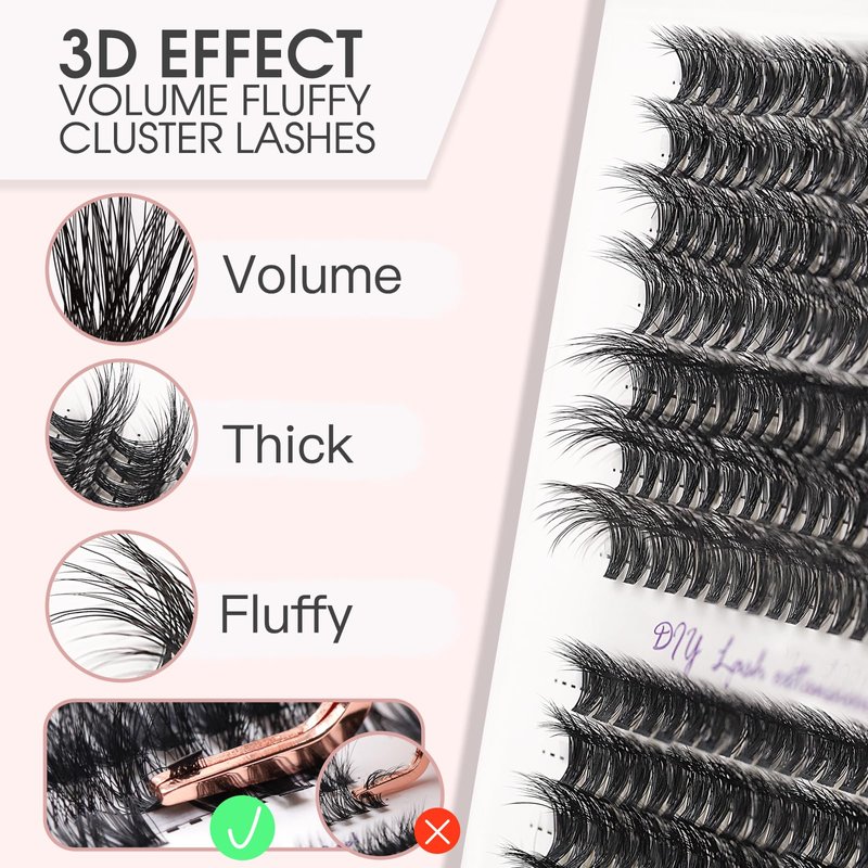 - Easy to Wear: Whether you're a beginner or a makeup enthusiast, you can get an eyelash extension look in less than 5 minutes. With lash applicator, the clusters are easy to put on natural eyelashes