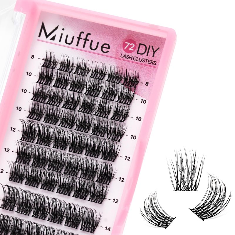 Miuffue Lash Clusters 72 PCs Cluster Lashes DIY Eyelash Extensions Super Thin Band Soft Mixed Tray Wispy Individual Lashes Eyelash Clusters (Fluffy, C-8-16mix)