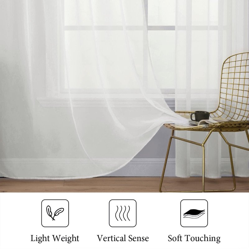 - Size&Material: Set includes 2 sheer panels of 54" wide x 108" length.Sheer curtain is made of Polyester. Soft to touch.