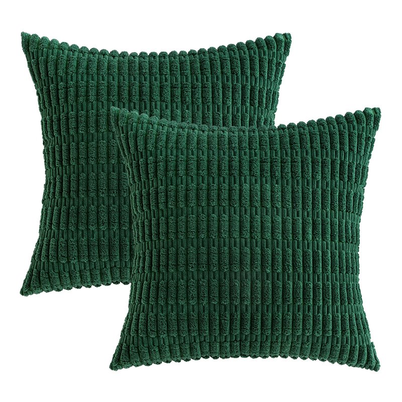 MIULEE Pack of 2 Dark Green Corduroy Decorative Throw Pillow Covers 18x18 Inch Soft Boho Striped Pillow Covers Modern Farmhouse Home Decor for Sofa Living Room Couch Bed