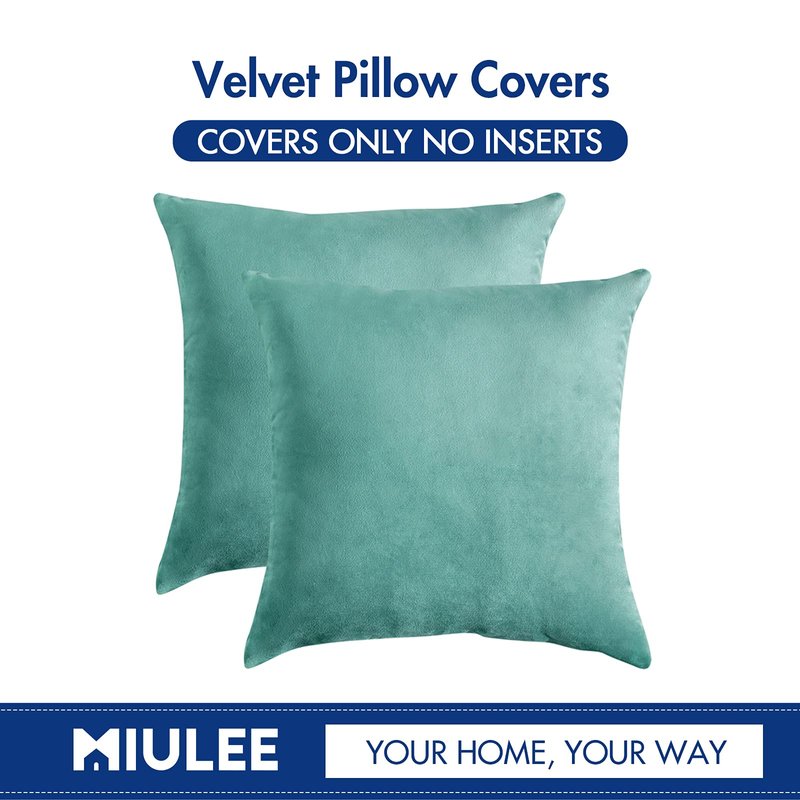 MIULEE Pack of 2 Velvet Pillow Covers Decorative Square Pillowcase Soft Solid Cushion Case for Spring Sofa Bedroom Car 22x22 Inch 55x55 cm Aqua Green