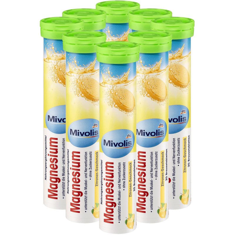 Mivolis Magnesium effervescent Tablets - Dietary Supplements 8 Tubes x 20 pcs | Germany