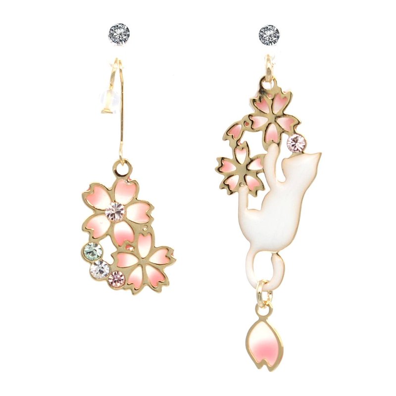 miwaki Dangle Earrings for women lady lovely Cat and sakura cherry blossoms Sakura, White Cat Tail
