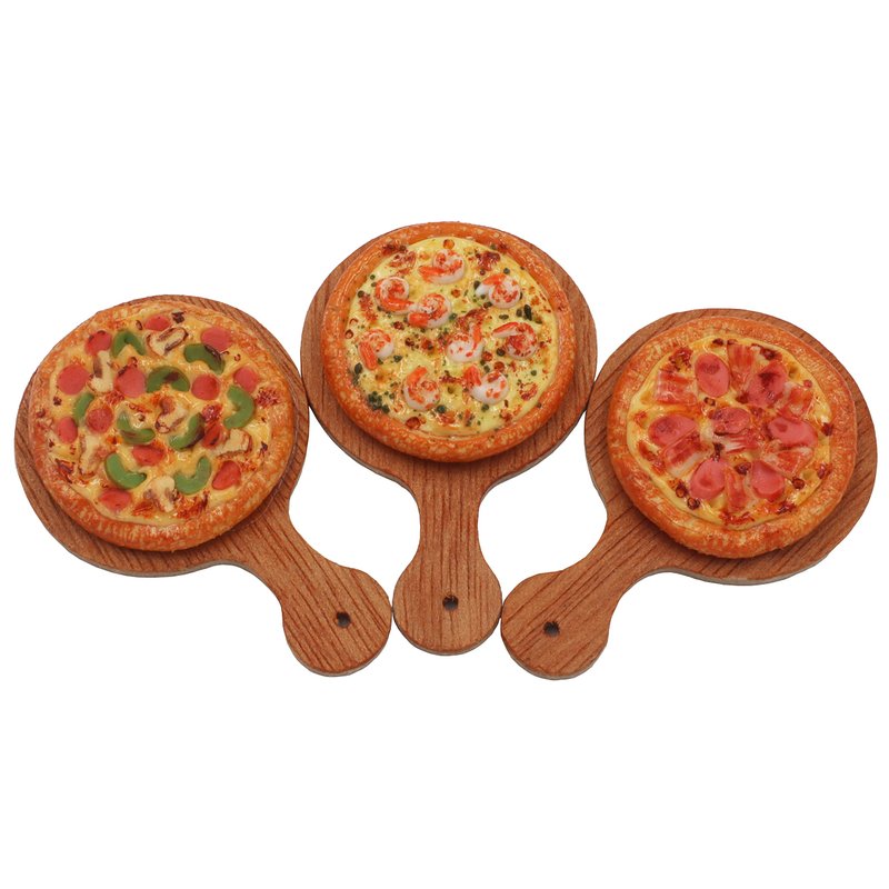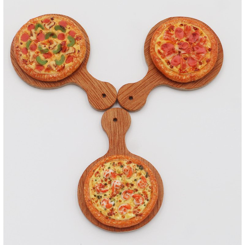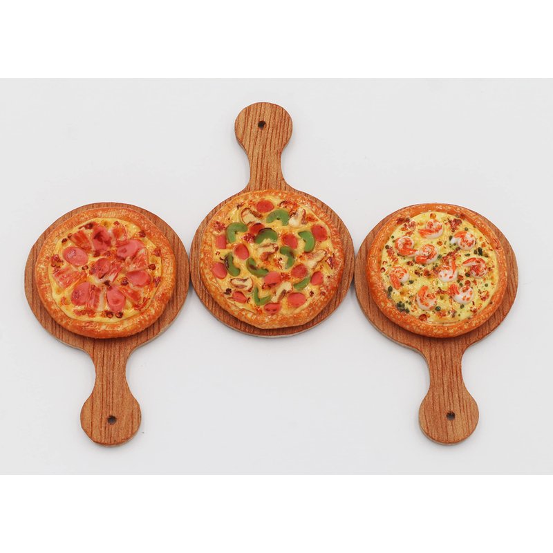 Mixed 3 Assorted Pizza Dollhouse Miniature on Wooden Tray, Dollhouse Food Dollhouse Kitchen Miniature