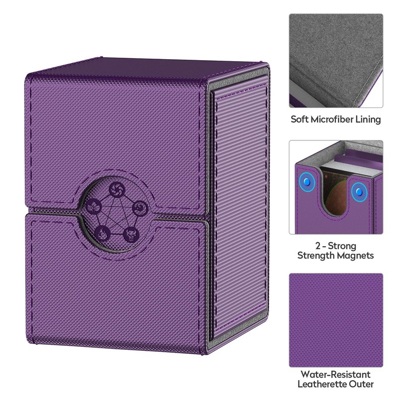 MIXPOET Purple Deck Box for MTG Cards, Trading Card Storage Box with 2 Dividers per Holder, Holds up to 110 Cards