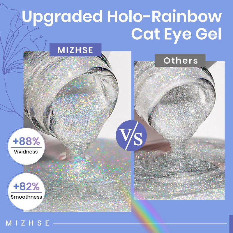 MIZHSE Cat Eye Gel Nail Polish Rainbow Cat Eye Holographic Glitter 9D Cateye Soak Off U V LED Gel Polish for Nail Salon Home DIY Manicure 12ml