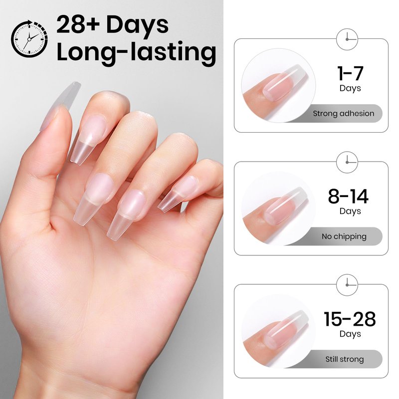 - Long Lasting and Healthy Resin: This solid nail glue can last 21+ days with a proper application (buffering, cleaning, and base top coat). And it's made of natural resin and healthy ingredients.It's easy to remove from nails, reduces damage to nails