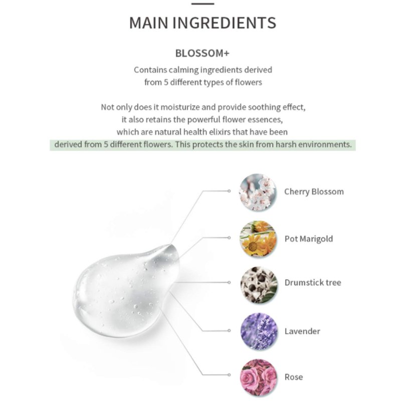 - [Moisturized] Ingredients for moisturized and soft skin. Plant-based moisturizers that absorb deeply into the skin provide long-lasting nourishment. Helping maintain healthy skin, gives vitality and radiance to the skin. Contains calming ingredients derived from 5 different types of flowers. Moisturizes and provides a soothing effect, protecting the skin.