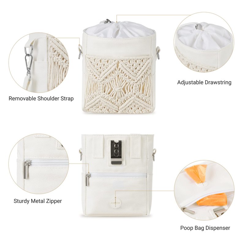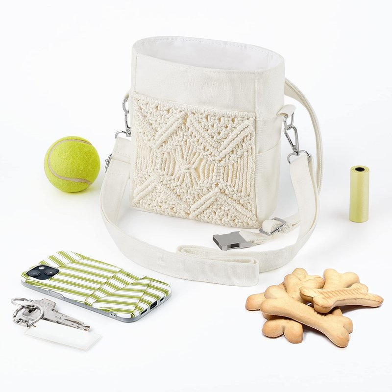 - Functional and Durability : The dog treat training pouch is made of premium cotton, combine with exquisite hand-woven rope which adds decorative touch. The multi-layer design allows items to be placed separately, practical and convenient.