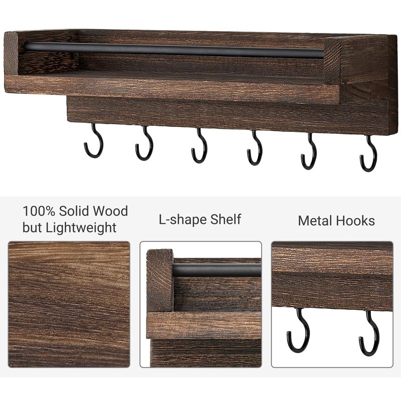- Key Holder Wall Mount. Mkono key holder with 6 hooks and a small top shelf is made of solid wood, light weight but sturdy & durable.