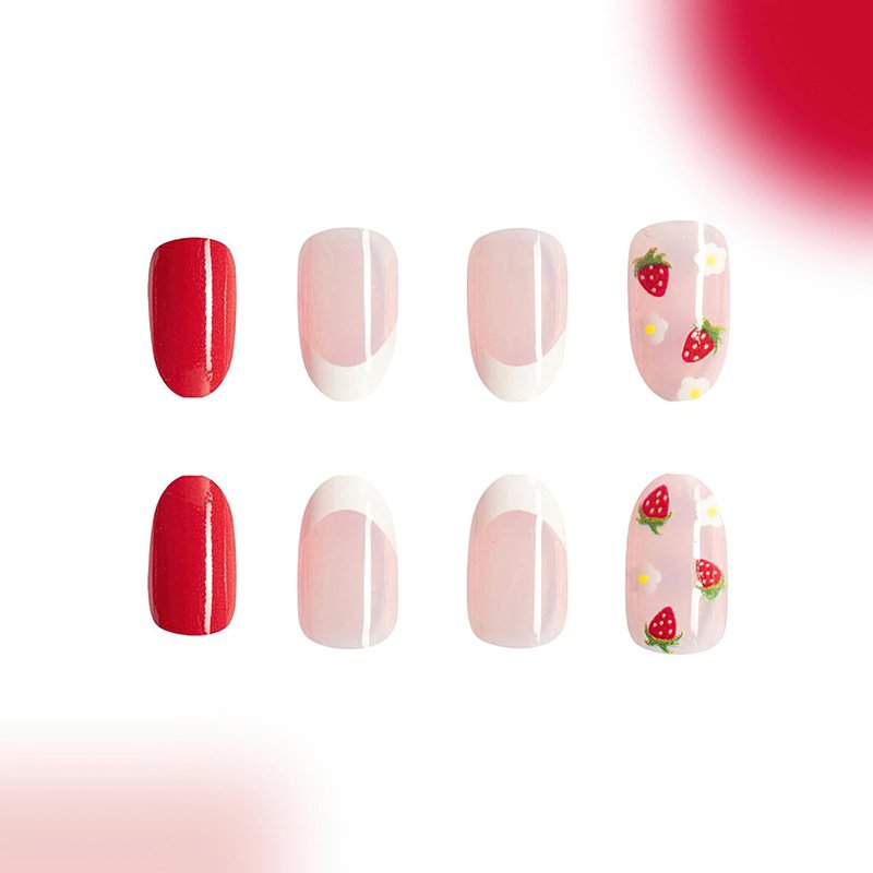 • 【Easy Application】Cute fake nail with strawberry designs just choose the nail piece that suits you, polish the nail bed, paste the jelly glue we give away, and press trendy nails for 30s to get the natural manicure that girls like.