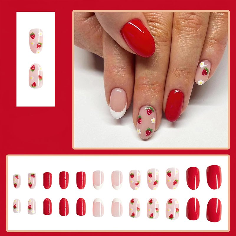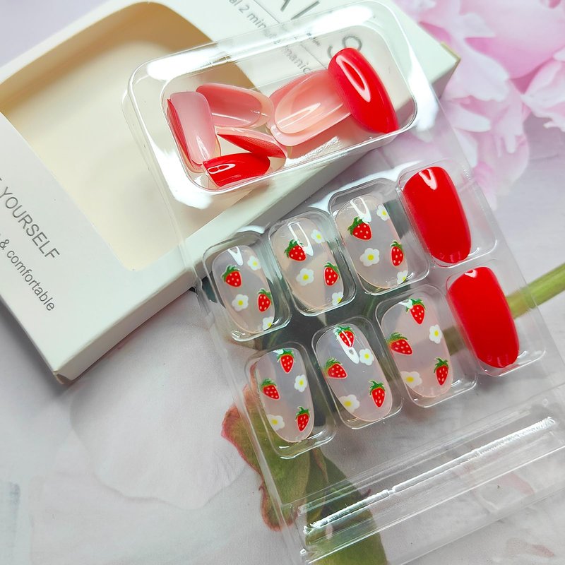 2. Cute strawberry fake nails made of good quality material, not harm your health.