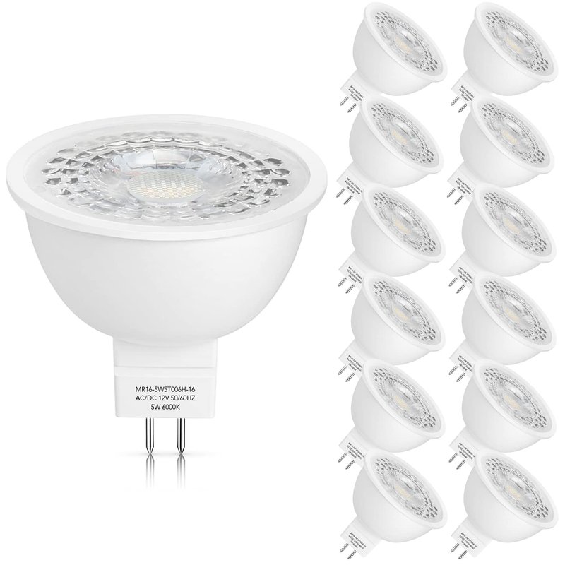 Mlambert 12 Pack MR16 LED Bulbs 50W Halogen Equivalent,6000K Cool Whitee,5W GU5.3 MR16 12V Spotlight Bulb,Non-Dimmable,45° Beam Angle for Landscape, Recessed