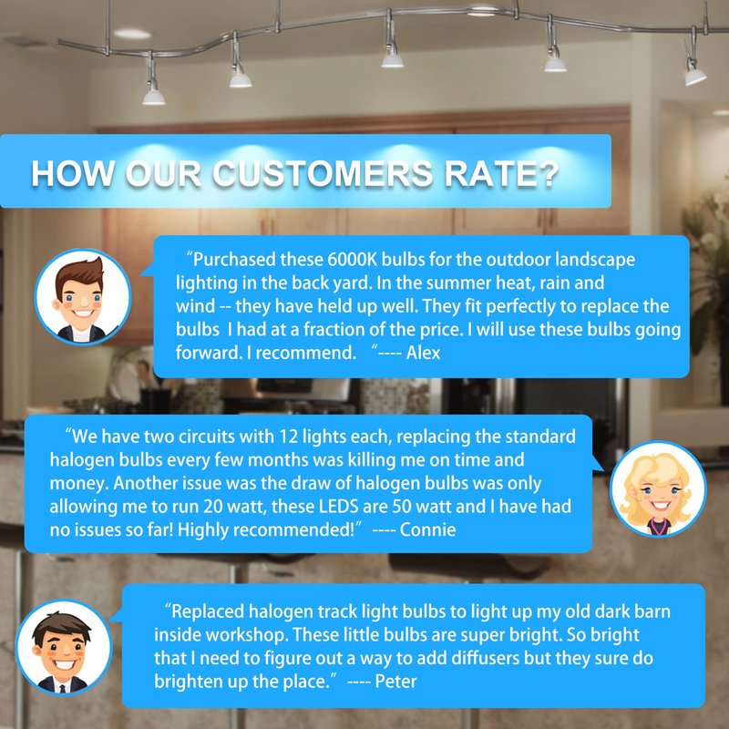 - Reliable MR16 LED bulbs: Suitable for kitchen track lights, recessed lights, ceiling lights, downlights, overhead lighting for home living room, bedroom, bathroom, hallways, counters, cabinet, art galleries, general lighting, hotels, museums, offices, restaurants, retail, low voltage outside outdoor landscaping flood light, uplights, yard, patio, lawn, path tree plants lights AC/DC 10-18V. Buy with confidence