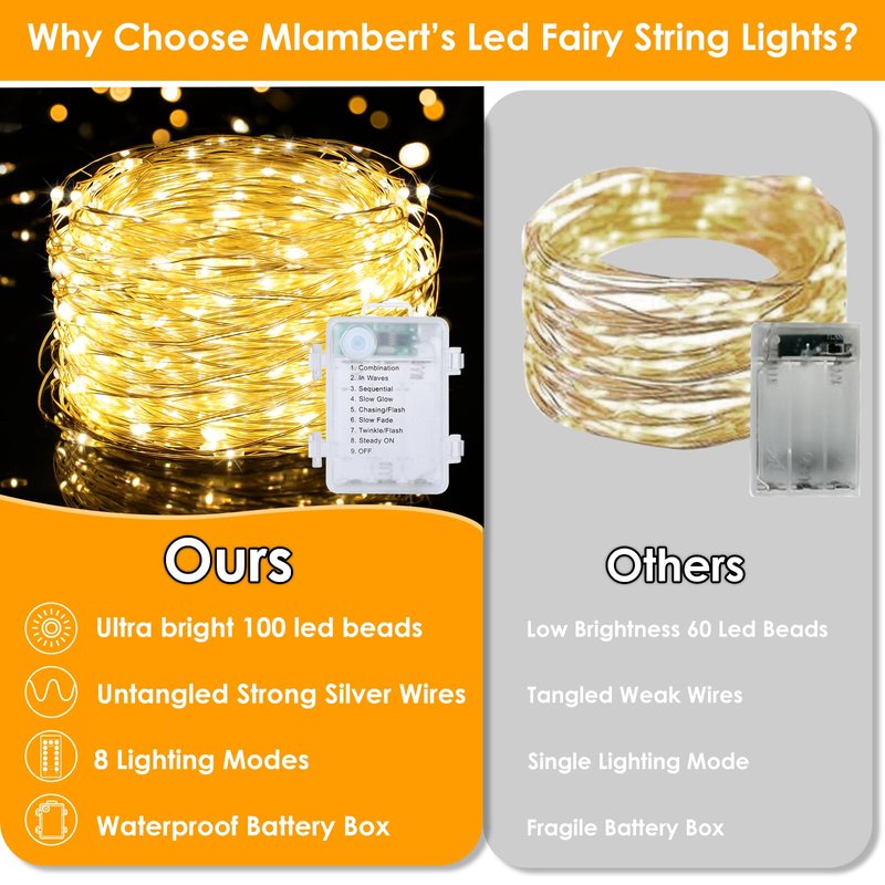 Mlambert Bright Warm White LED Fairy Lights - Perfect for Adding a Warm Glow to Your Indoor & Outdoor Spaces!