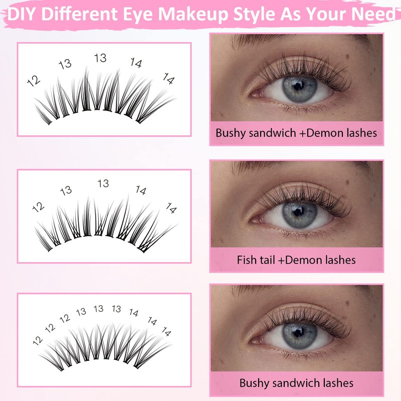 - DIY Eyelash Extension Kit: The individual lashes kit including 3 styles mixed volume lash clusters. One box of lashes can be applied many times to create different styles like manga lashes, cat eye lashes, anime lashes.