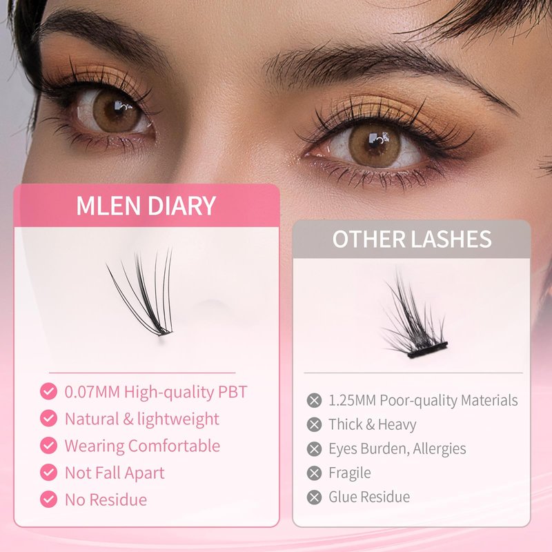 - 【SATISFACTORY AFTER-SALES SERVICE】MLEN DIARY focuses on providing you with high-quality lash extension clusters and serving your beauty. If you have any questions about our products, please feel free to contact us, and we will reply you within 24 hours.