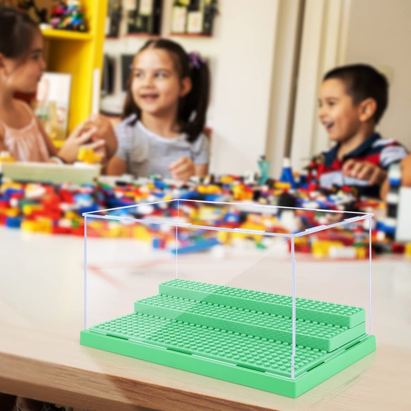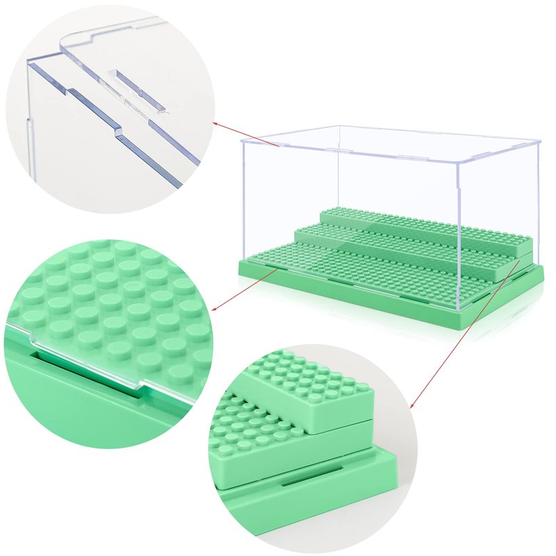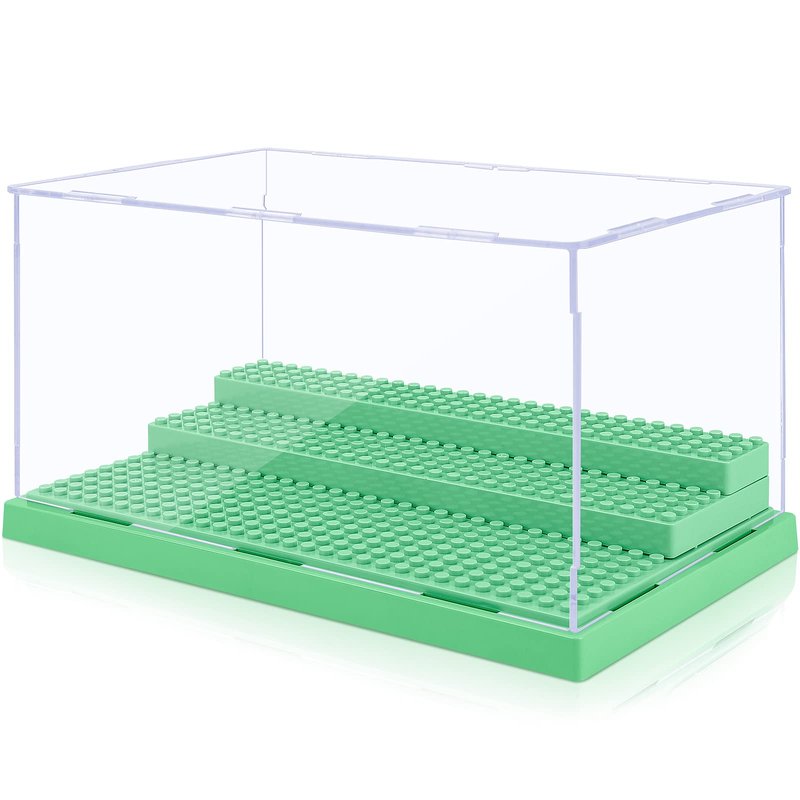 Mlikero Display Case for Minifigures Action Figures Blocks, Clear Acrylic Minifigure Display Case Box Storage, Dustproof Showcase with 3 Movable Steps Gift for Kids, Green