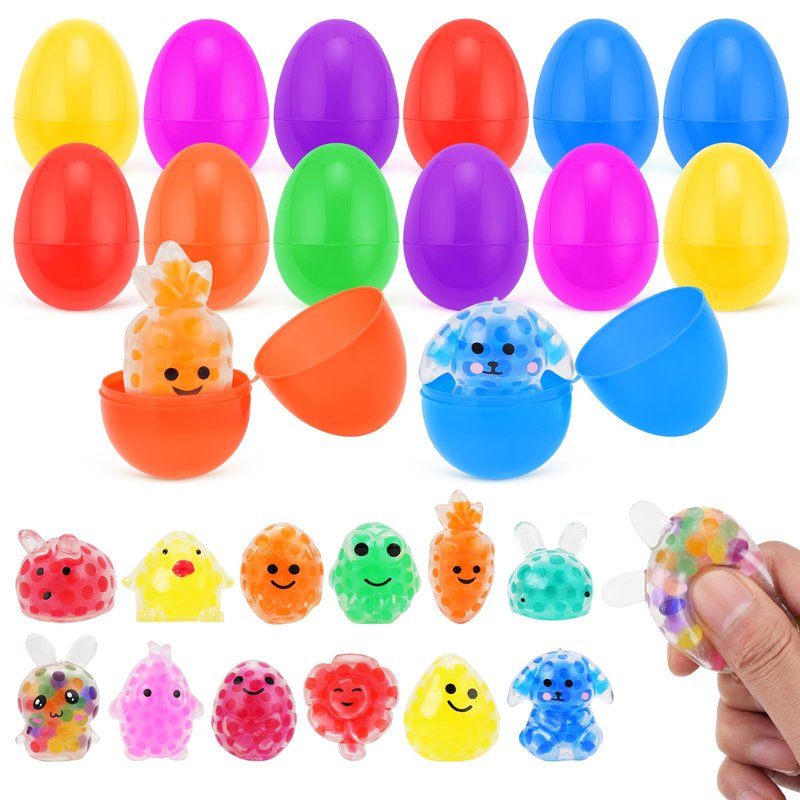 - Great Easter Basket Stuffers: Package Includes 12 Different Cute Easter Themed Squishy Toys Pre Filled in 12 Plastic Easter Eggs(1.57inch*2.36Inch). Easter Basket Stuffers, Easter Basket Fillers, Easter Gifts, Party Favors, Birthday Gifts, School Classroom Rewards, Carnival Prizes, Pinata and Goodie Bags.