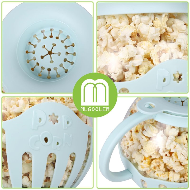 - GLASS POPCORN POPPER: The M MUGOOLER microwave popcorn maker is made of high temperature resistant borosilicate glass that is BPA free and can withstand the high temperatures of the microwave to make delicious popcorn quickly and easily.