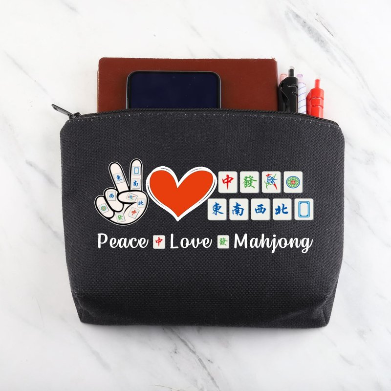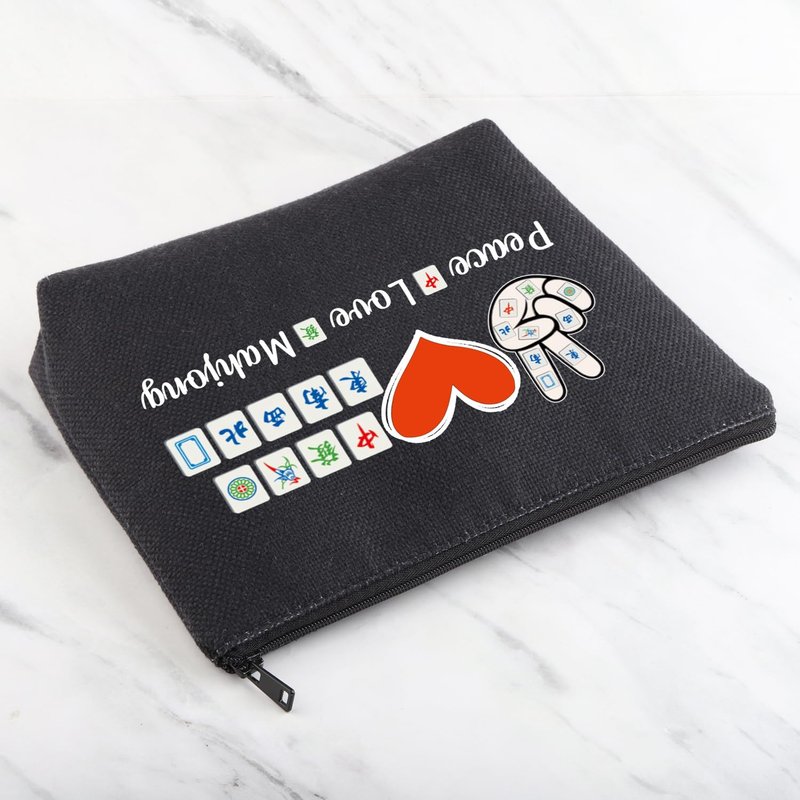 MNIGIU Funny Mahjong Bag Mahjong Lover Gift Peace Love Mahjong Board Game Fan Gift Lucky Mahjong Gift