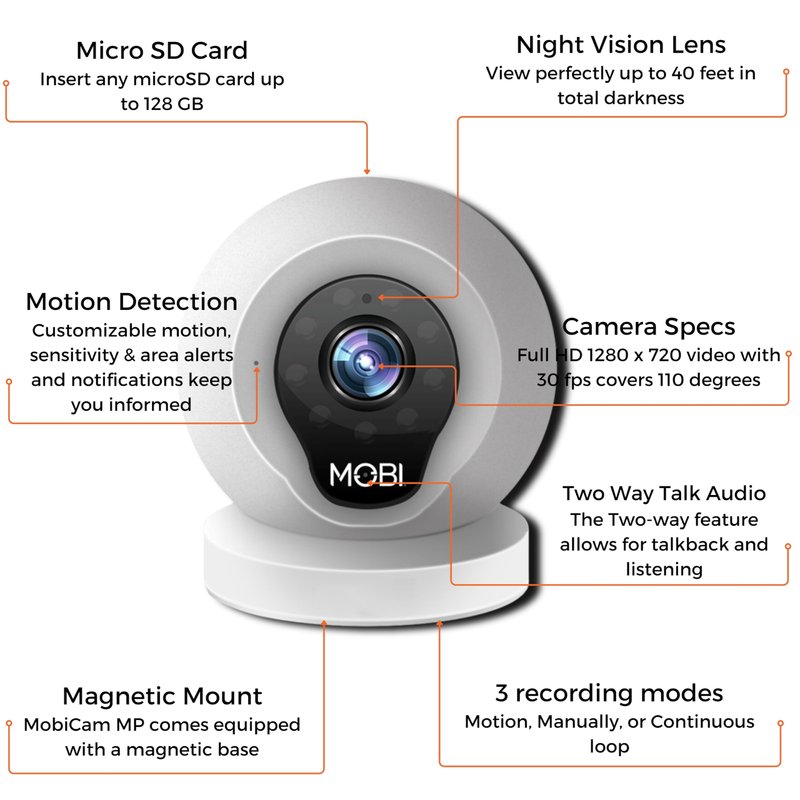 - Style: MobiCam Multi-Purpose WiFi Camera with 2-Way Audio Monitoring System