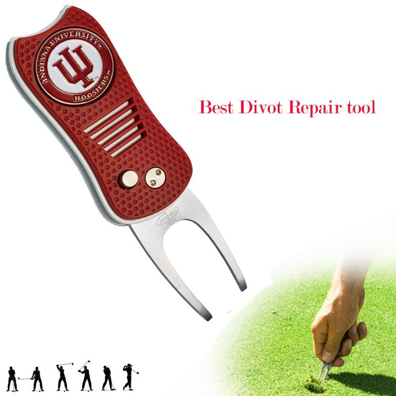 Mobile Pro Shop Switchblade Divot Repair Tool with Logo Printed Removable Magnetic Ball Marker-Best Divot Fixer (Indiana Hoosiers)