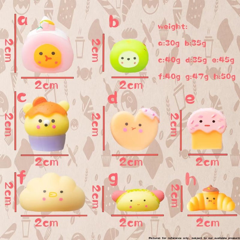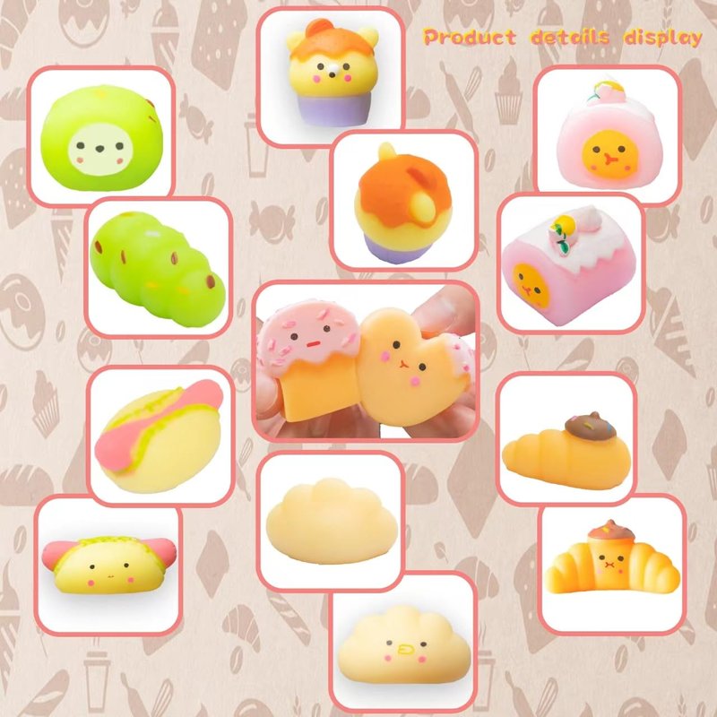 - 2” CUTE TOYS: Compact and adorable, each mochi squishy toy is approximately 2 inches, making them the perfect size for on-the-go stress relief or play