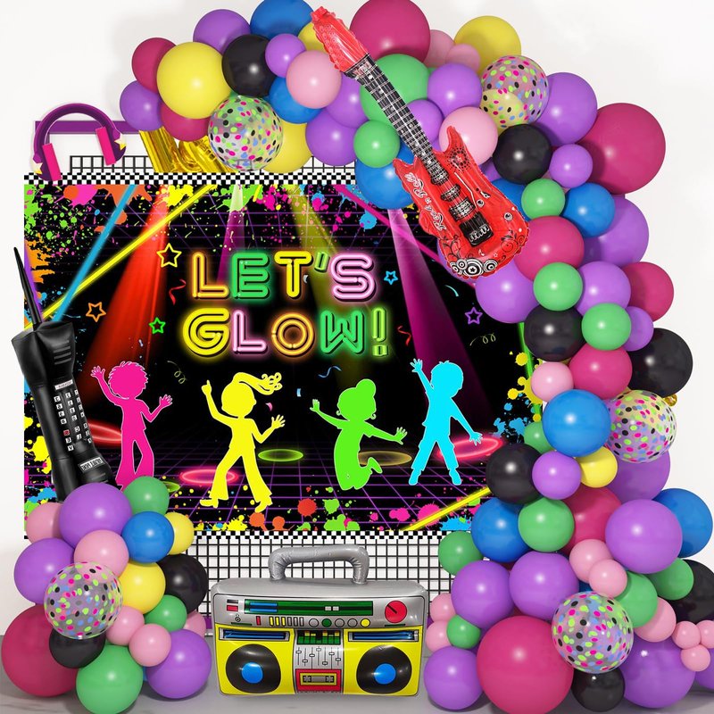 Mocsicka Glow Neon Backdrop 7x5ft Let's Glow Background Dancing Glow Party Themed Backdrop Neon Birthday Party Supplies Background Picture of Party Decoration