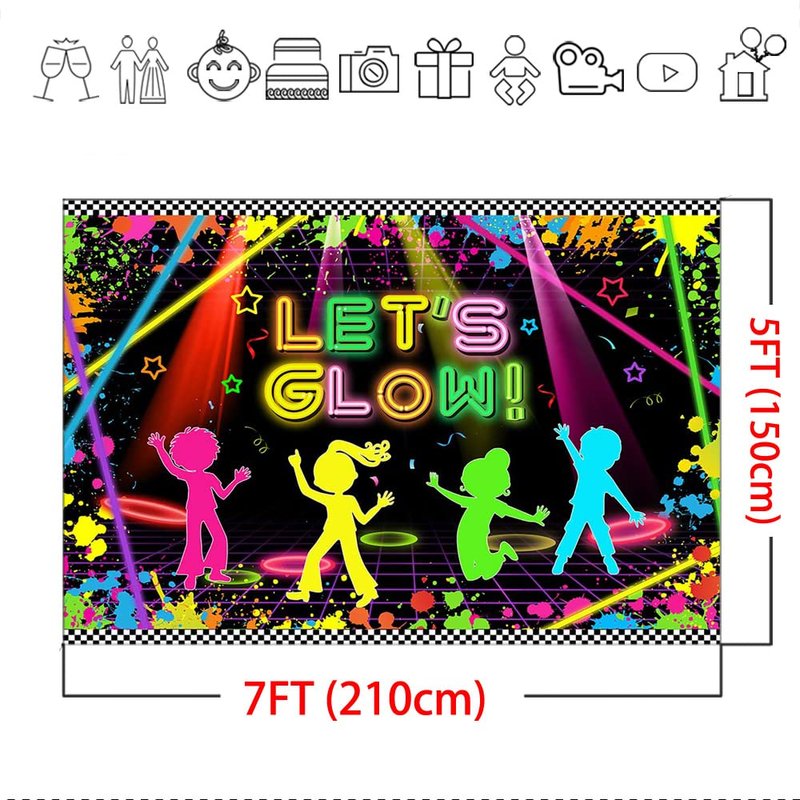 - 【GLOW THEME】 - This Let's Glow Backdrop is Perfectly Used as Birthday Party Decorations or Cake Table Banner or Photo Studio Photography or Wall Decors or Candy Bar Decorations. It’ll Definitely Be A Hit for Your Special Event.