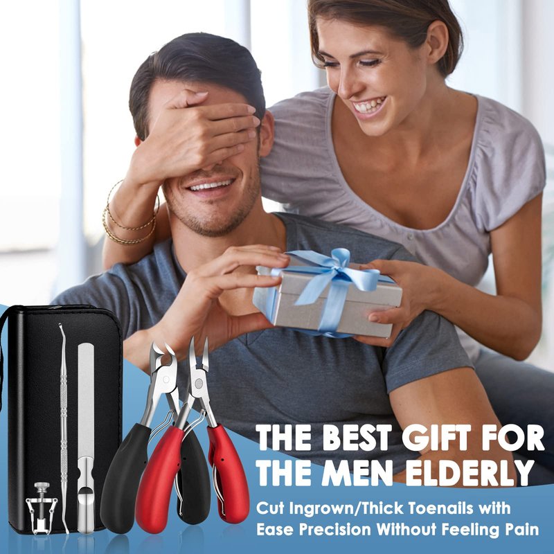 - [Ideal Gifts for Lover] Our toenail tool kit is specially designed with pedicure ingrown nail clippers and thick nail clippers than others to provide salon services at home. It comes with a leather bag for easy carry and is suitable for women, men, and especially the elderly. You can prepare it for your friends, parents, grandparents, and relatives as a perfect gift on Birthdays, Thanksgiving, and Christmas Day. Share life convenience with them, giving them nice trimming and shaping nail styles.