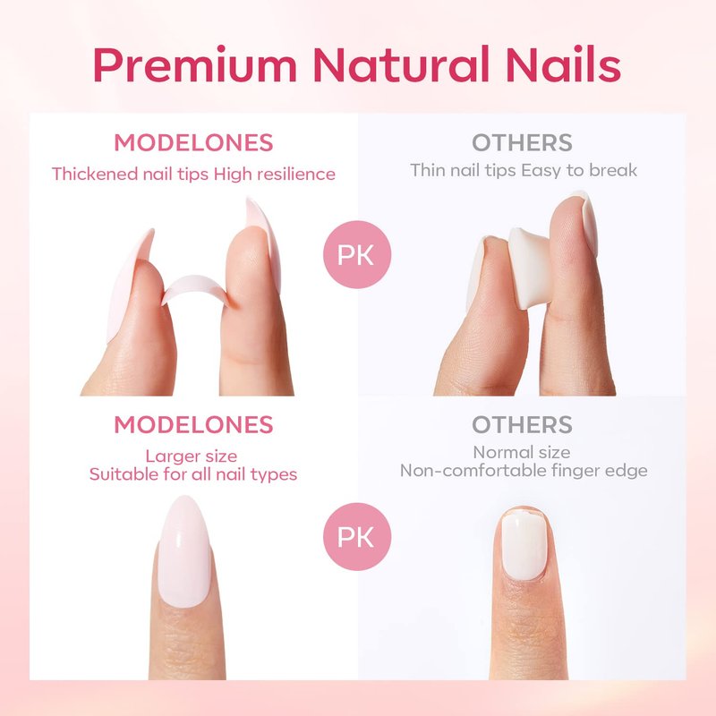 - Pop-on Mani in Minutes: Match, glue, and press. Pop on your nails with Modelones ready-to-wear nails in 3 easy steps without nail polish, UV light, and drying time, helping you achieving a perefect, non-damging manicure within a few minutes.
