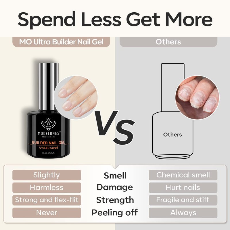 - 30 Days No Peel-Off & No Bubbles: Modelones nail thickening builder nail gel is made of professional formula, which is adjusted after 72 tests. Say goodbye to air-bubble and peel-off problems. High durability clear gel builder can stay last longer and brings you natural, strong, flexible, and feather-light nails. Long-lasting for 30+ days with with proper application