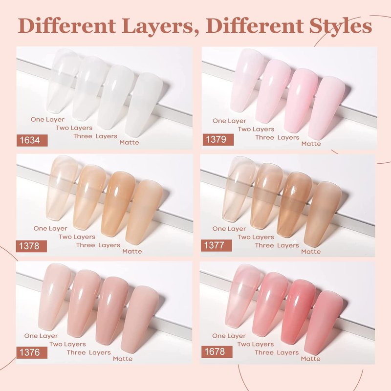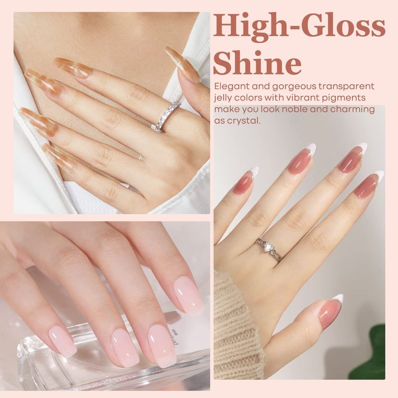 - 【Care for You】This translucent jelly gel nail polish kit may cause an allergic reaction by skin contact in rare cases. Do a test before using it to check for any reaction. Any problem, please contact us. We are more than happy to help you out.