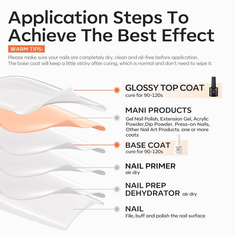 - 【Versatility 】 Modelones base and top coat gel nail polish compatible with various nail art needs, such as gel polish, acrylic nails, dip powder, press on nails, nail tips, chrome powder, gel x, etc. Use manicure products from Modelones for best results.