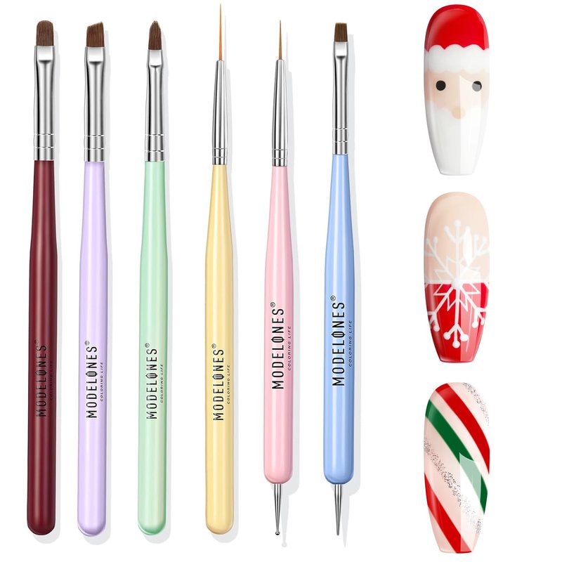 Modelones Nail Art Brush Set, Nail Art Tools with Nail Polish Brush, Nail Extension Gel Brush, Nail Liner Brush, Nail Carved Brush, Nail Dotting Pen, and Builder Nail Gel Brush for Salon at Home DIY